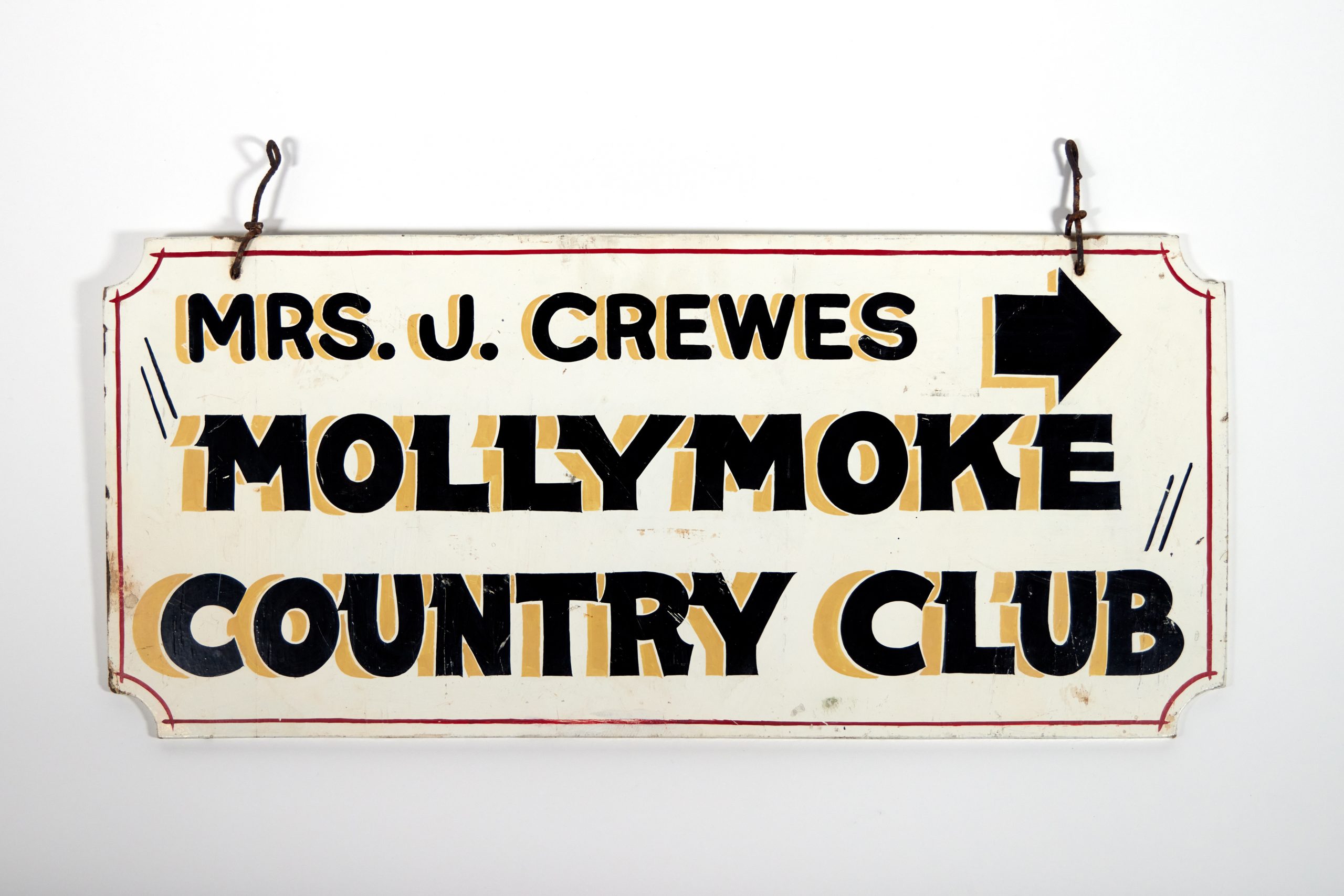 Mollymook’s fresh, salty breezes and relaxed atmosphere must have constantly reminded Joy Crewes why she and her husband John had moved there in the early 1950s. These keen amateur golfers had left Sydney behind to manage the Molly Moke Country Club, with its guesthouse and golf course overlooking the town’s popular beach. So, it must have been a time of great sadness when Joy had this sign professionally painted by local signwriter Peter Williams. She hung it at the club, introducing herself as the sole manager after her husband died there in 1956.